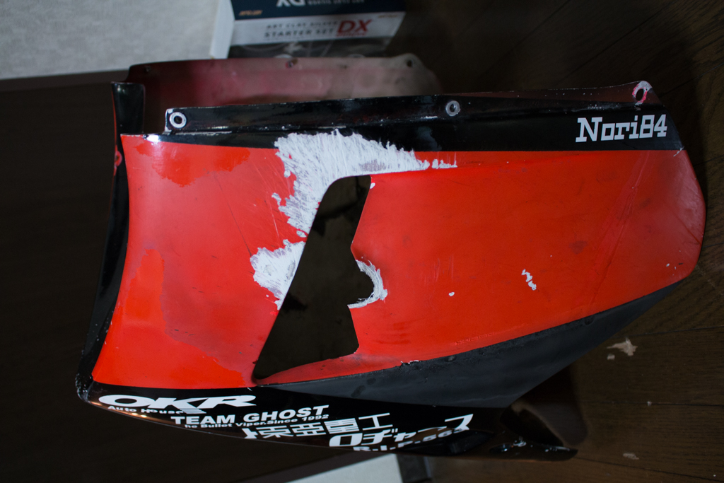 でもレースの時くらいはそれなりにしておきたいし…でも面倒だし…ってことで、削れてしまったところはもうそのままで良いので、色だけそれとなく塗って隠してしまう作戦。