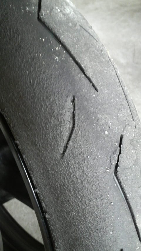 今日は午前中だけ走って来たんですけど、帰る頃にはフロントの右側がほぼ終わりって感じに減ってしまって回転方向を前後入れ替えか新品行くかで思案のしどころです。