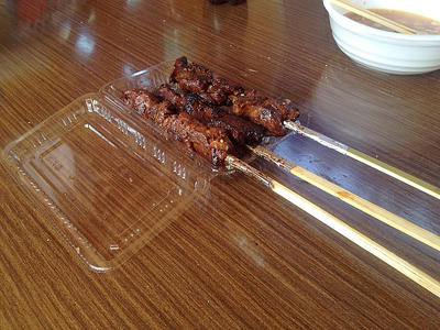 ご飯食べてたら日光食堂のおじちゃんがサービス!って言って牛串を持って来てくれた!!