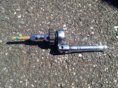 手持ちの一番小さい直角に曲がるラチェットと、名前は知らないけど手でグリグリ回せる間に着けるやつ。
