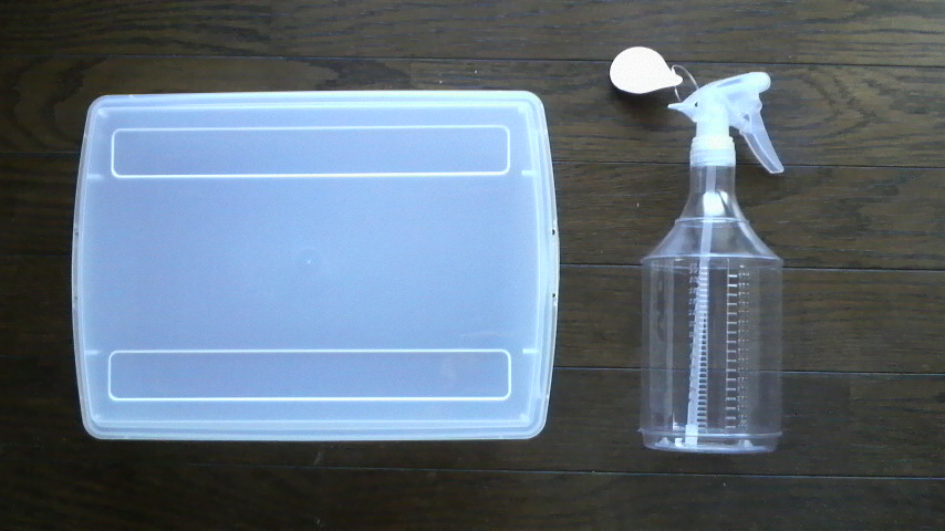 買って来たのは内容量のメモリがついてるスプレーシュッシュの容器とVHSテープの収納容器。