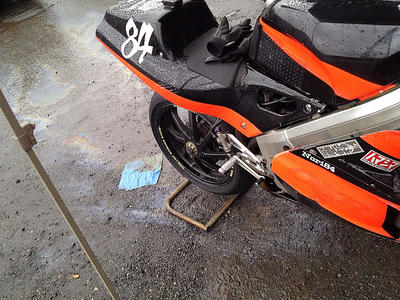 それはもう鼻歌交じりに燃料と空気圧をチェックして、相変わらず前後サスはフルボトムしてしまうものの、できる中ではかなり良い感じのセッティングな足。