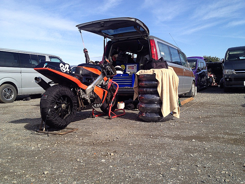 ブレーキの揉み出しもしとく予定だったのだけど、今動きはそこまで渋くないので、揉み出しは明日の予選前にする。