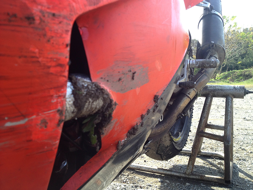 土の上でほぼ立ち転けだったんで人もバイクもまったくダメージないんですけどね。