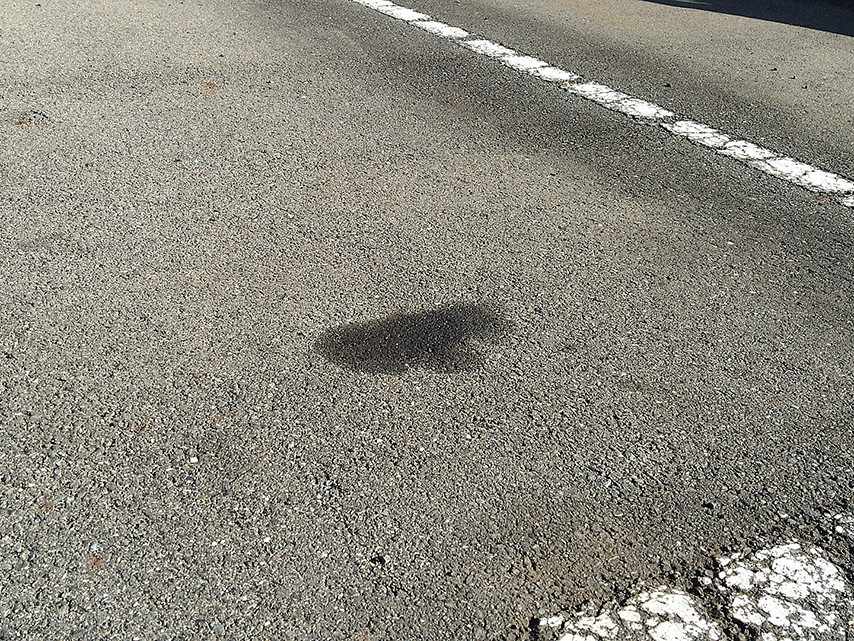 前回オイル交換した後くらいからほんの少しずつ、恐らく1日に1滴か2滴くらいの頻度だと思うんですけども、駐車場のエンジンの下辺りの部分にオイルのシミができ始めた。