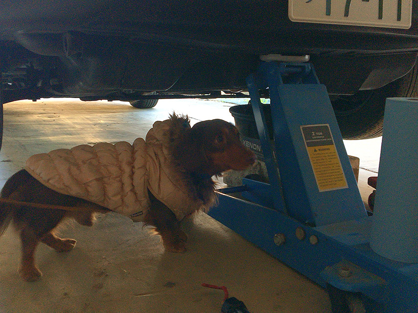 ナオトさんが仰向けに寝てオイルフィルターに手を伸ばしてる時に隣りで仰向けに転がって同じポーズしててやたら可愛かった♪