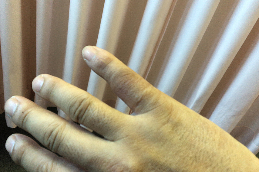 包帯を巻き直す時に一週間振りに見た我が右手の小指。