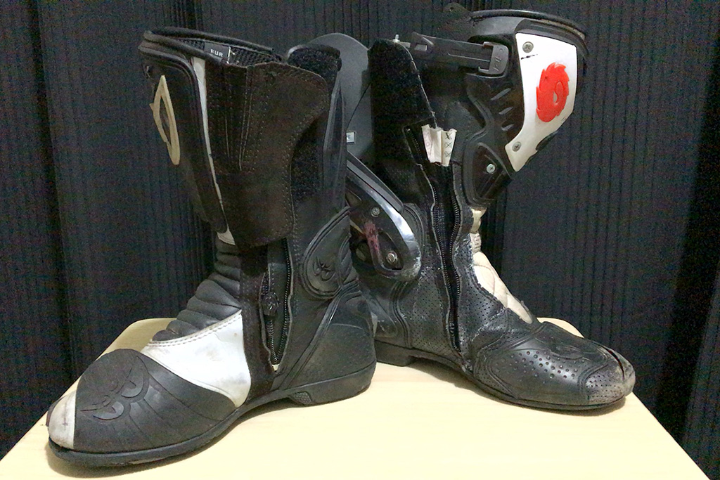 去年の11月に参戦予定のレースが全部終了した時点で、オフシーズンの間にブーツを修理しようと思ってたんですよ。