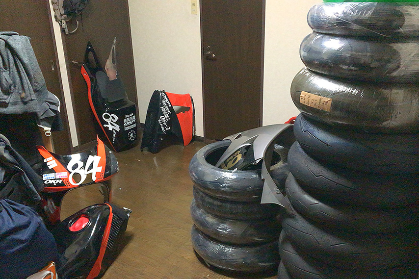 いい加減適当に補修を続けて来てオンボロもいいところなので、今年は久しぶりにちゃんと塗り直してみようかな…とか思ったりしつつ、なんだかんだと何もしないっていう可能性もなくはないと言い切れなくもないといった感じで、とりあえず車からカウルとタンクなんかを降ろしておいたらリビングがもう大変。