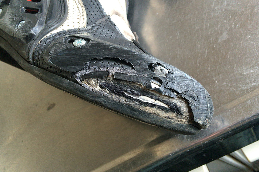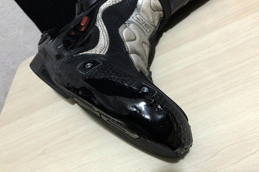 いつぞやの年末にミニバイクで遊んでる時にうっかりスライダーを突破して爪先を削ってしまってそのままにしてたんですけども、VFRのリアサスを伸ばしてリンクもRVFに取り替えて車高を上げまくったらまさかのVFRでまでたまに爪先をするようになってしまって、こりゃぁいかんな、と。