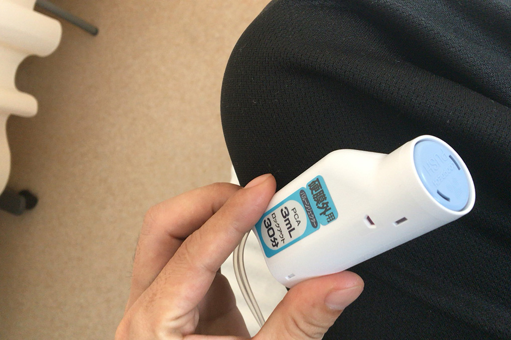 暫く我慢できるか試してみるものの、これはあかんやつだと、ちょうど点滴の残量をチェックしに来た看護士さんに痛みを訴える。
