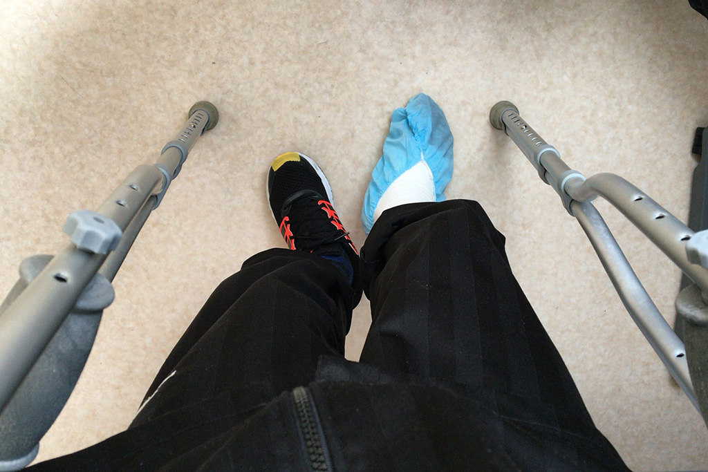 まだ一切体重を載せてはいけないというのだけど、爪先だけでも地面に降ろして杖をついて歩くととても楽になるのが解った。