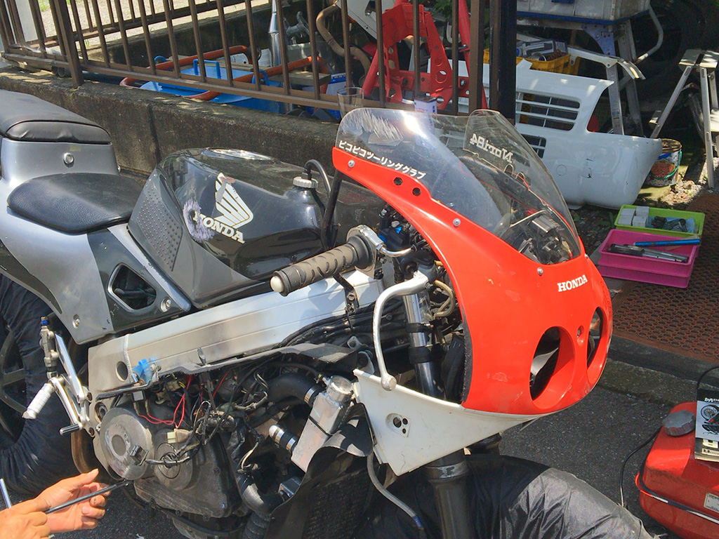 他の被害状況を一通り見てくれたNメカさん曰く、GSX-Rのキャブその他をやって普通に走らせるようにするよりは、VFR直した方が早いだろこれ!ってことで、その方向でお願いすることになりました。