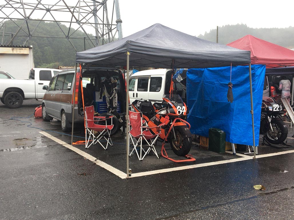 フレーム交換ついでにNメカさんに諸々修理とアップグレードをお願いして先週末セッティング出しをしに那須MSLに行って、それはもう良い感じだったのだけど…現地に6時ちょい前に到着してみると予報に反してサラサラと雨が降り出して、朝イチの有料走行の8時半くらいにはいよいよ本降り。