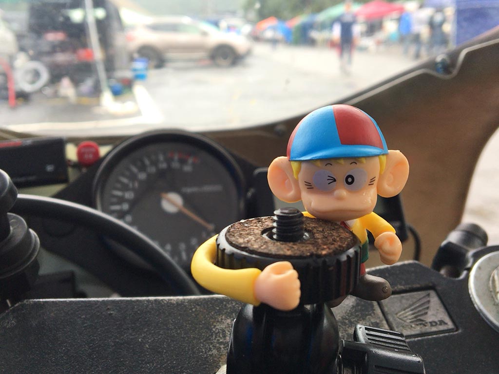 で、タンクからガソリンを抜いて、車載カメラやロガーも取り外してしまって、朝缶コーヒーを買ったら着いて来た怪物くんをカメラのステーに絡ませたりしながら『ネーンリーキーシューチューゥピーキピーキーアイーン!ターチマーチーオーツゥームゥーガー!ン!だーぁふーんだー♪』とか鼻歌を鼻ずさみながらテントの中で現実逃避してたんですけどね、僕が走らないって決めたらそりゃぁそうですよ。