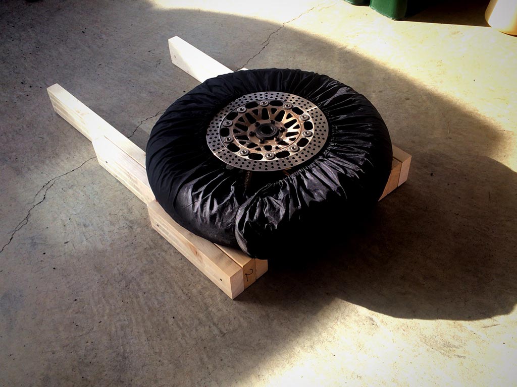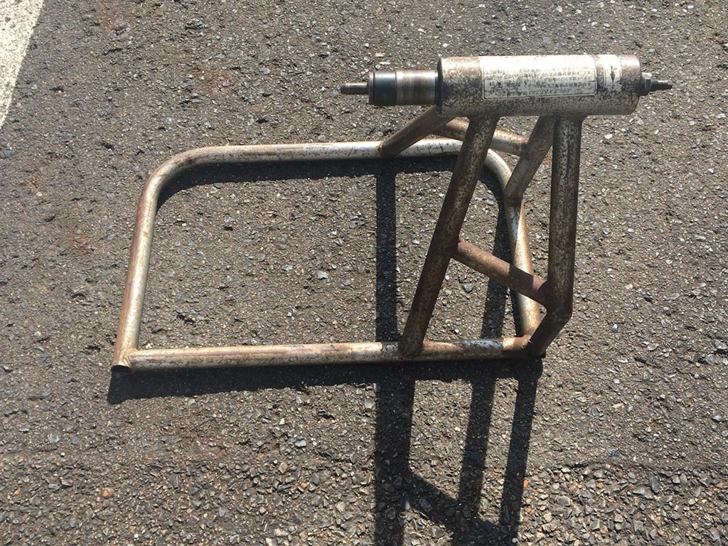 今まで使ってたスタンドは持ち上げると後ろに下がってしまうのだけど、ローラーが付いているのでその場でリフトアップできるようになった。