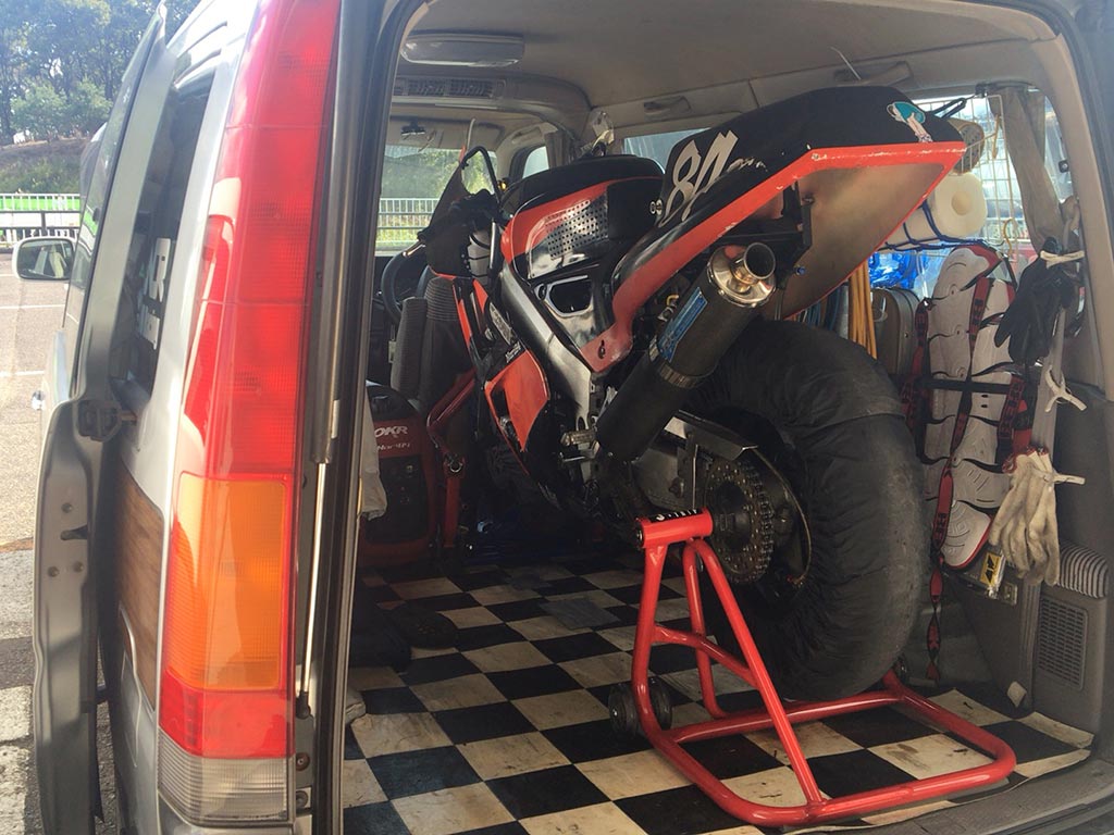 VFR400R(NC30)でたまにミニサーキット走行。C24セレナ(トランポ)と時々カメラのお話し。