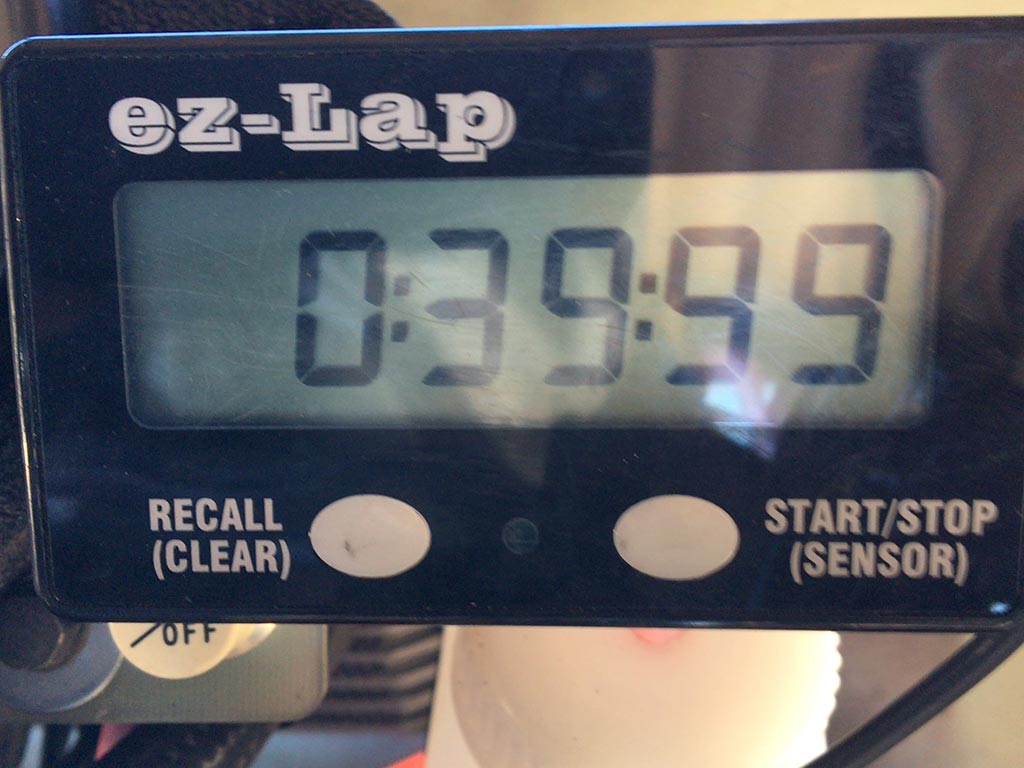 走り方はとにかく急なバンク時のグリップが信用できないので、寝かす時も開け始めも慎重に慎重に。それで40秒5とかだったかな。