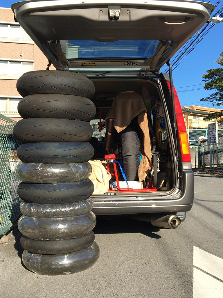 今回処分したタイヤは全部ディアブロスーパーコルサV2なので、噂ではどんなに溝がなくなっている状態でもヤフオクに流せば1セット5千円から1万円くらいにはなるんだそうなんですよ。