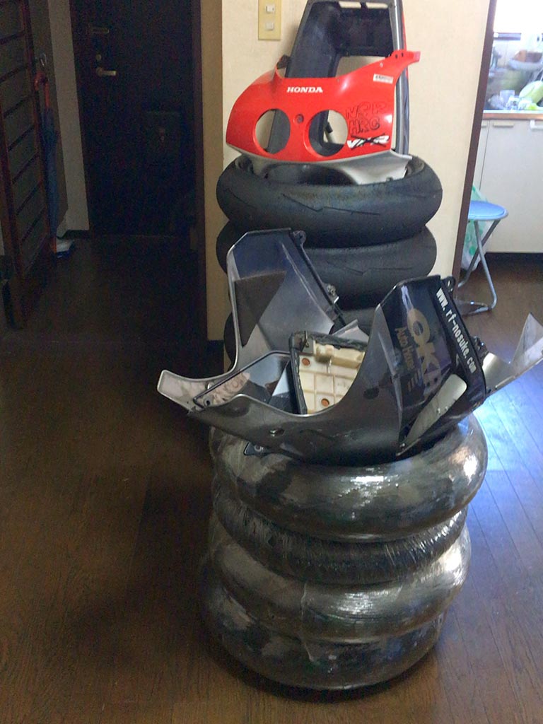 割れて破片が欠損してるカウルとかはいつか直すかも知れないと思って取ってあるし、R1のパーツはそのうち売ろうと思ったままあるのも忘れてしまいっぱなしになってたりするし、でも普段あるのも忘れてるくらい今の僕の生活とはまったく関わらないもの達だ。
