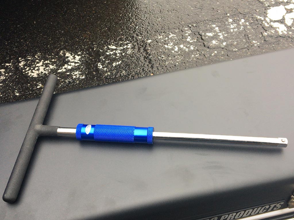 僕がサーキットで工具を使うことっていうと、まず移動用のサイドスタンドの着け外しとタイヤ交換とスプロケ交換が主なところで、サイドスタンドと前のキャリパーとボトムケースの一番下のボルト、スプロケは前のカバーを外す時と後ろのスプロケを留めてるナットを外す時にTハンドルを使う。