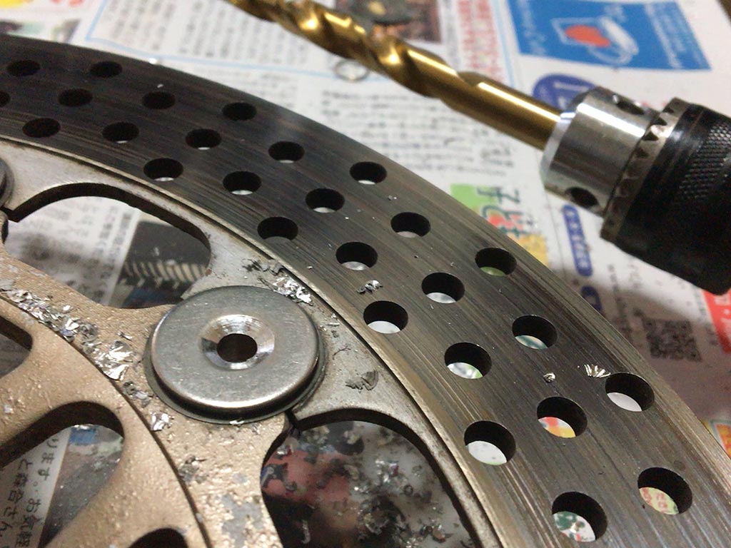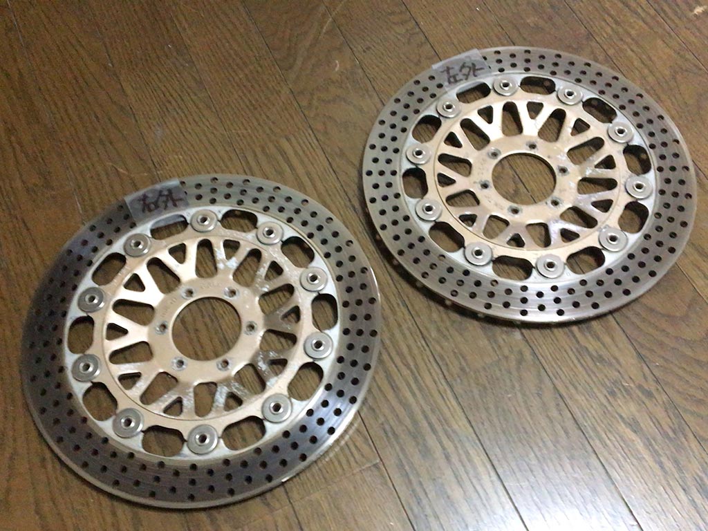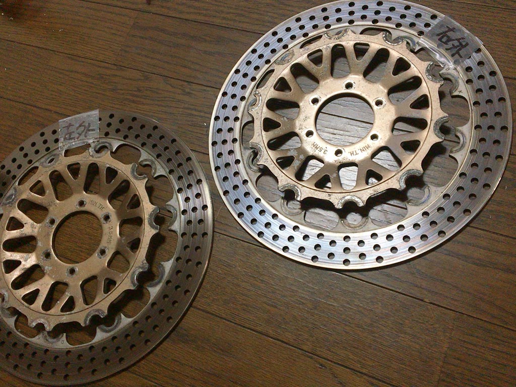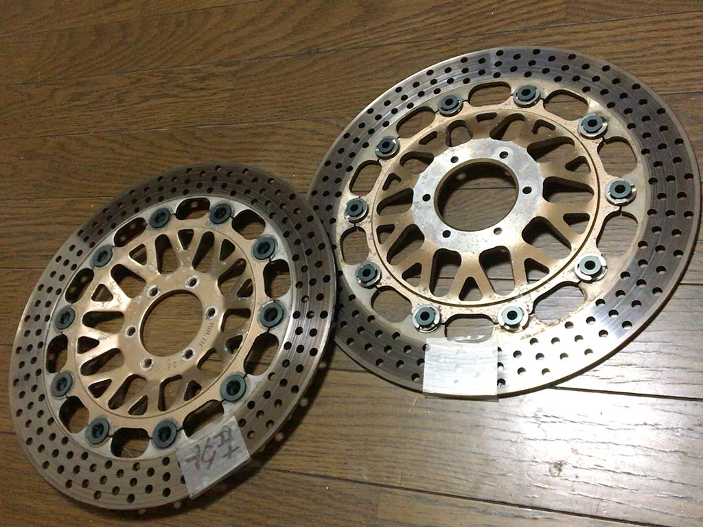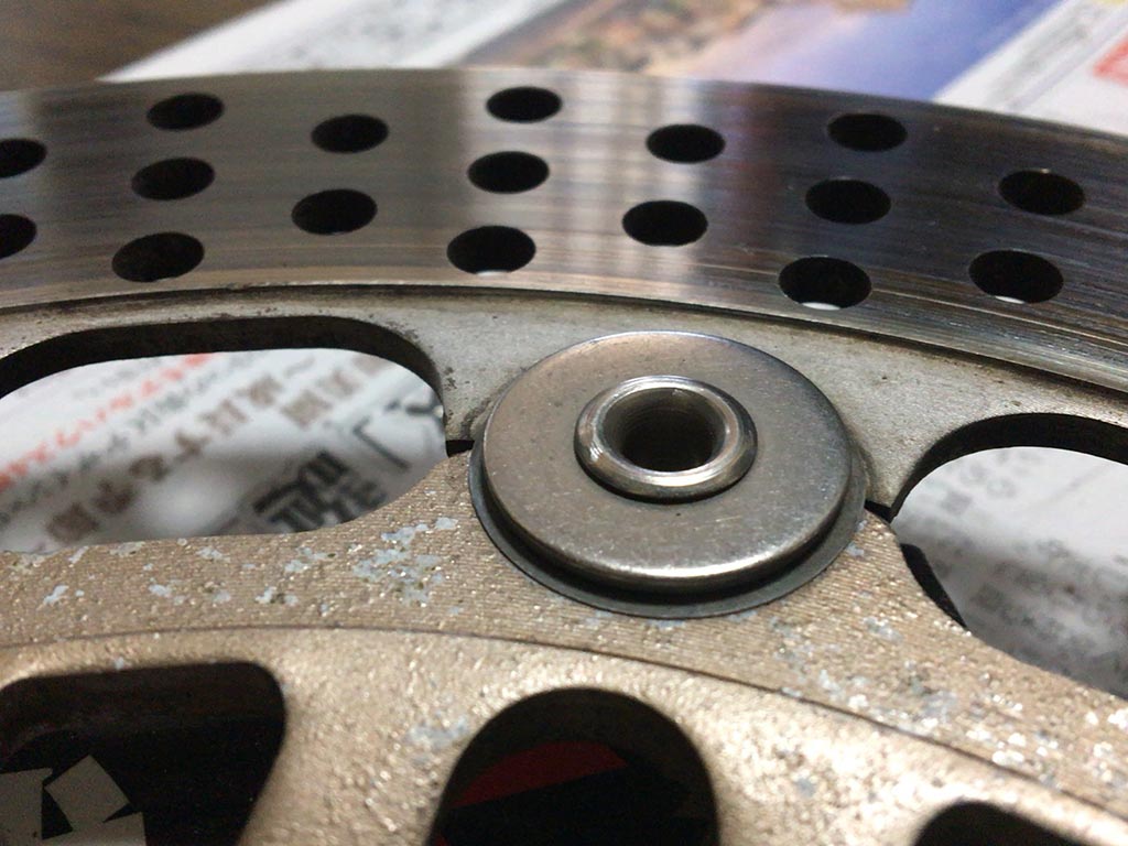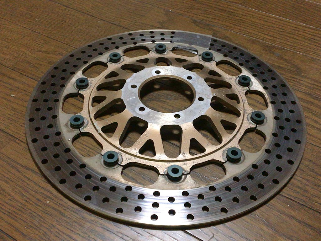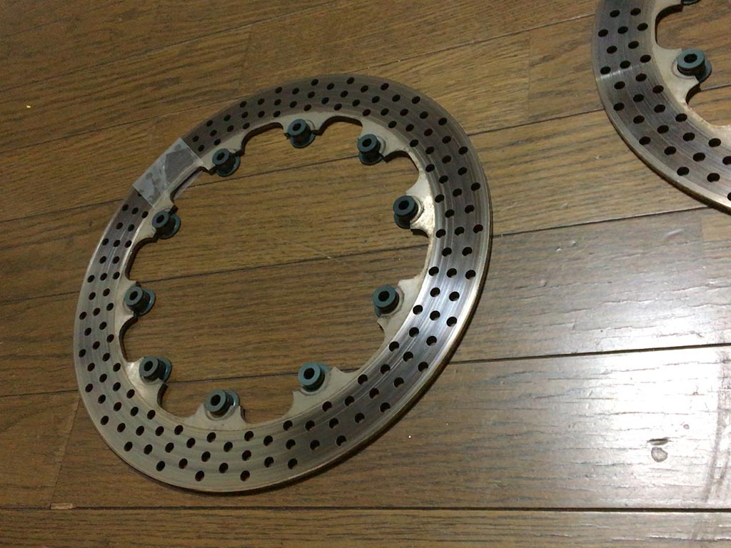 純正のディスクはピンっていうかかしめでガッツリくっついていて、こいつをサンダーなんかで削り落としてはずせってことらしいい。
