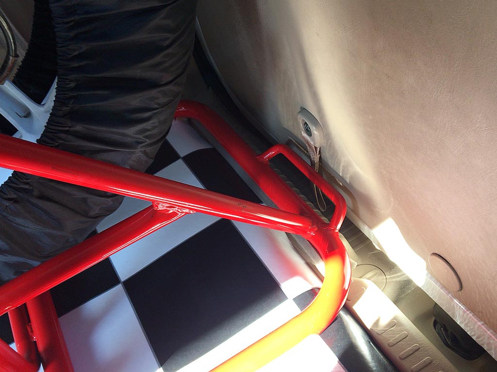 そんな訳なので、2列目右のシート用のレールを取り外した部分の補強用に入れた板が厚過ぎてRVボックスがVFRの下に入らなくなった疑惑だったので、その板を剥がして後ろに持って来て、親方がこの辺りのカーブに合わせて端を切り落としてくれて、プロアームスタンドを掛ける部分の床の強度が完璧になった。ありがたい!