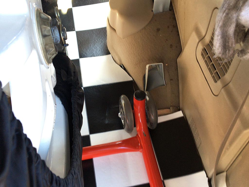 移動しながら思うに、この前セレナの床にクッションシートを貼った時に、VFRをまっすぐ積み込むために運転席をかなり前にずらしたんですけど、それがあまりにも前過ぎて狭い。