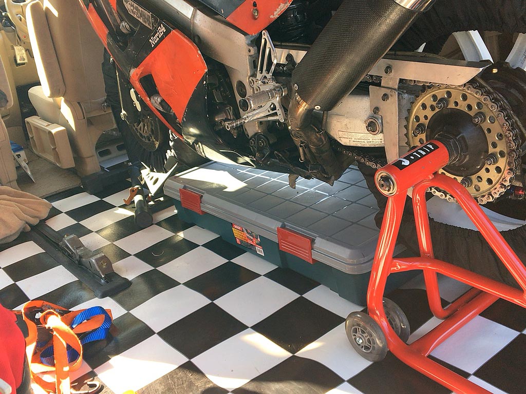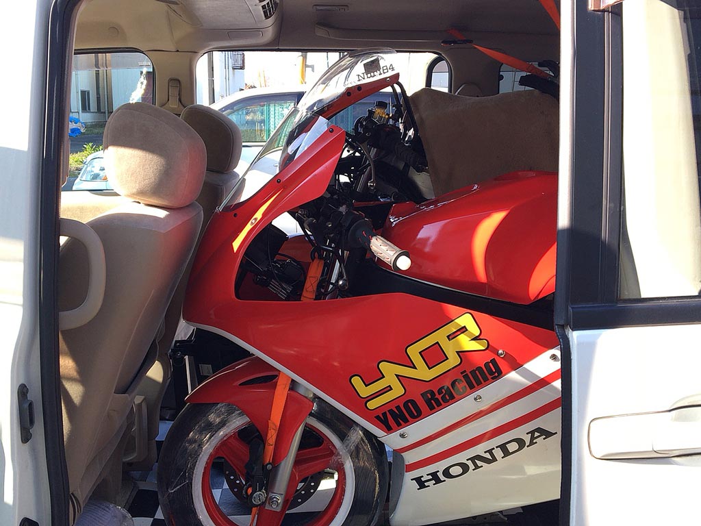 そんなこんなで今僕のニュートランポセレナは、運転席の後ろにVFRを真っすぐ積み込んで奇跡のクリアランスに調整された。