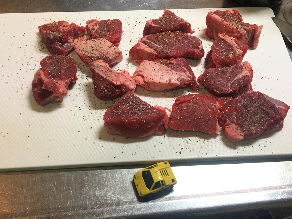 これをザックリチョロQの2〜3倍の大きさに切るじゃないですか。