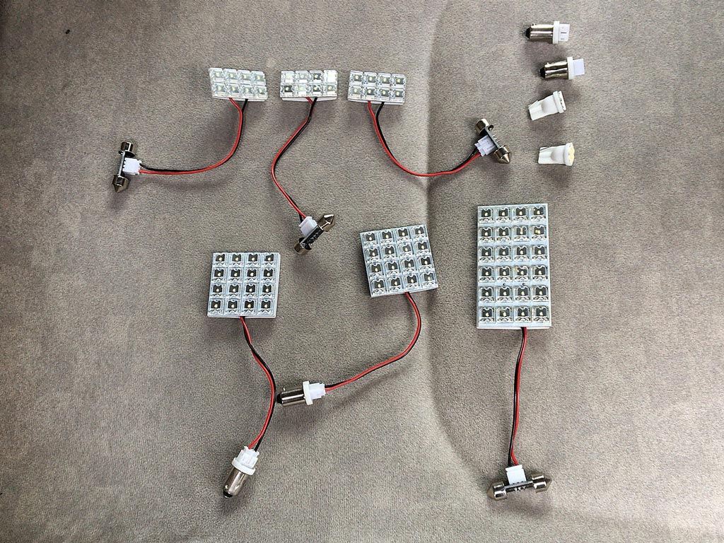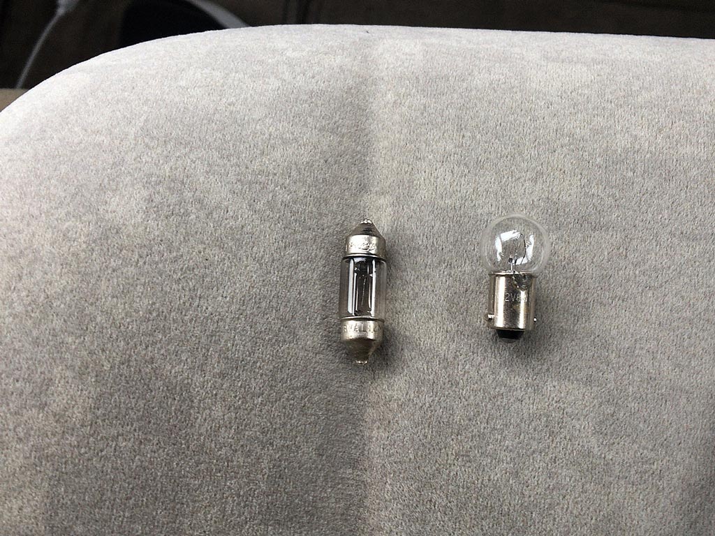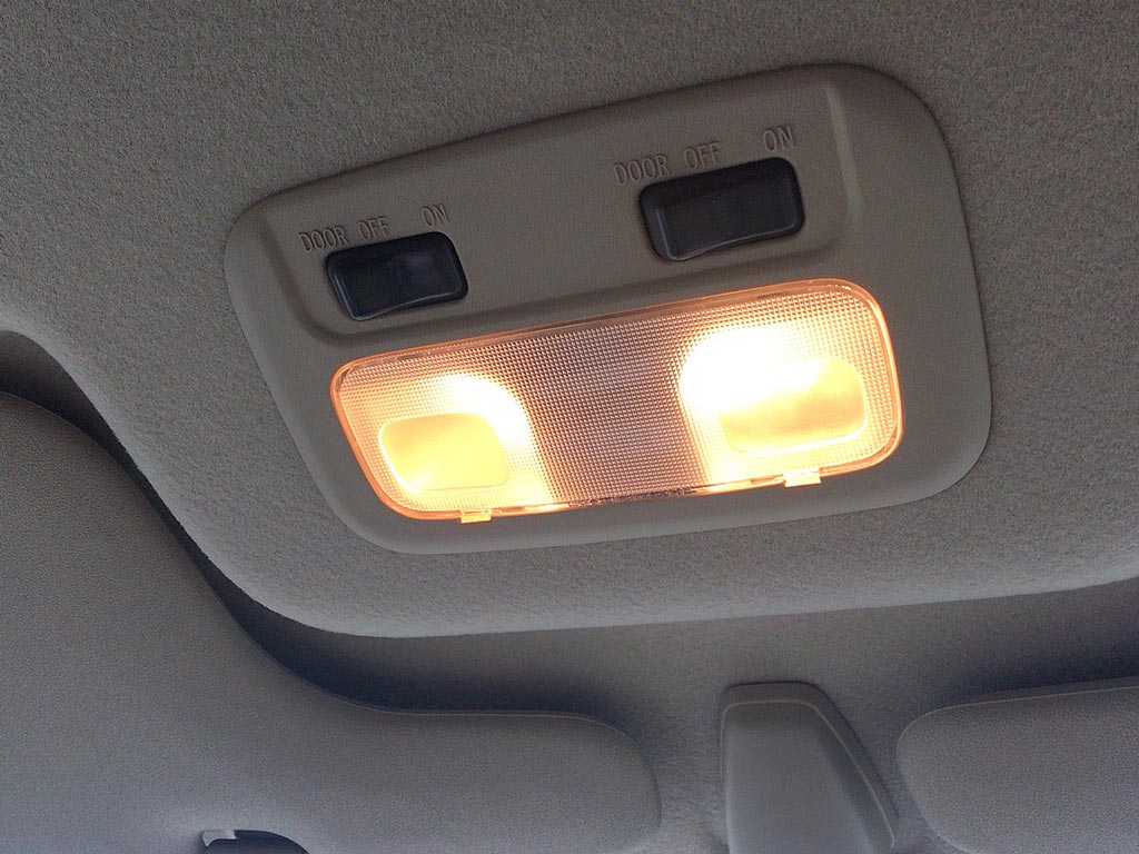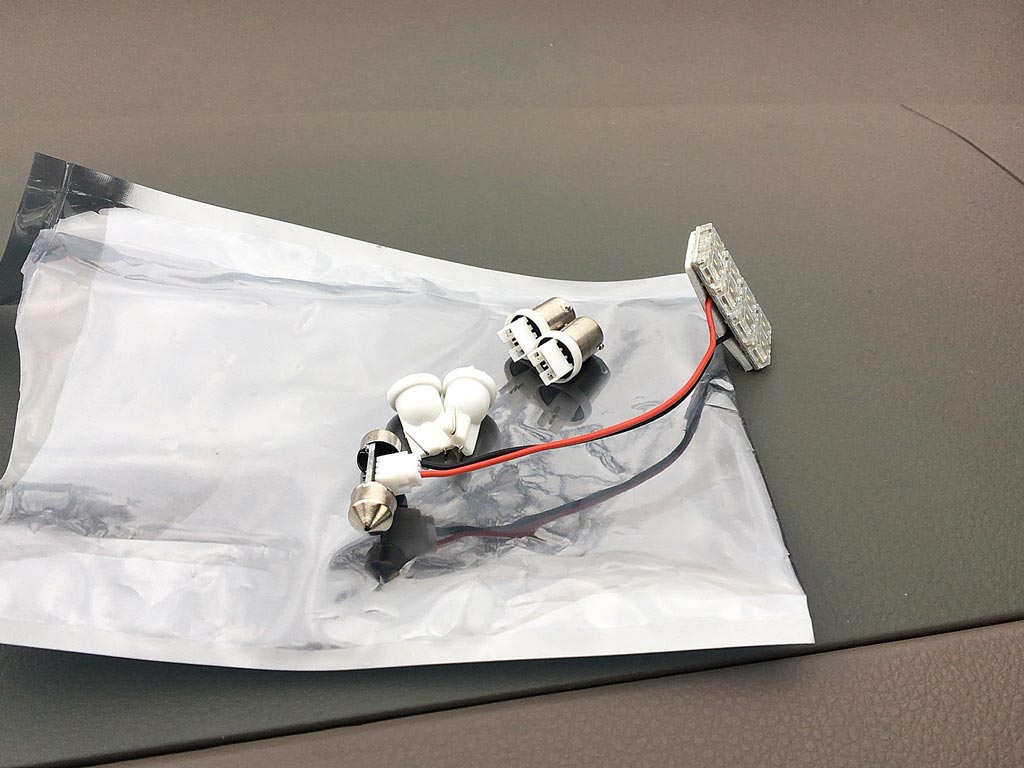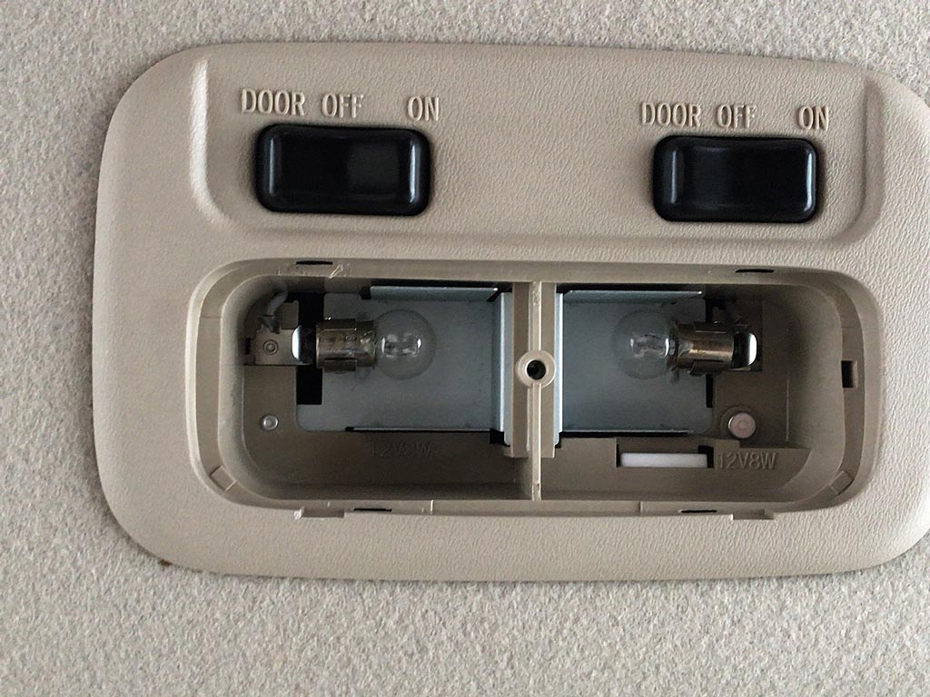 またろくでもないミスをしないように、先に車内の全部のライトを確認すると、運転席と助手席の2発が豆電球みたいなやつで、それ以外は両方に電極があるやつだった。
