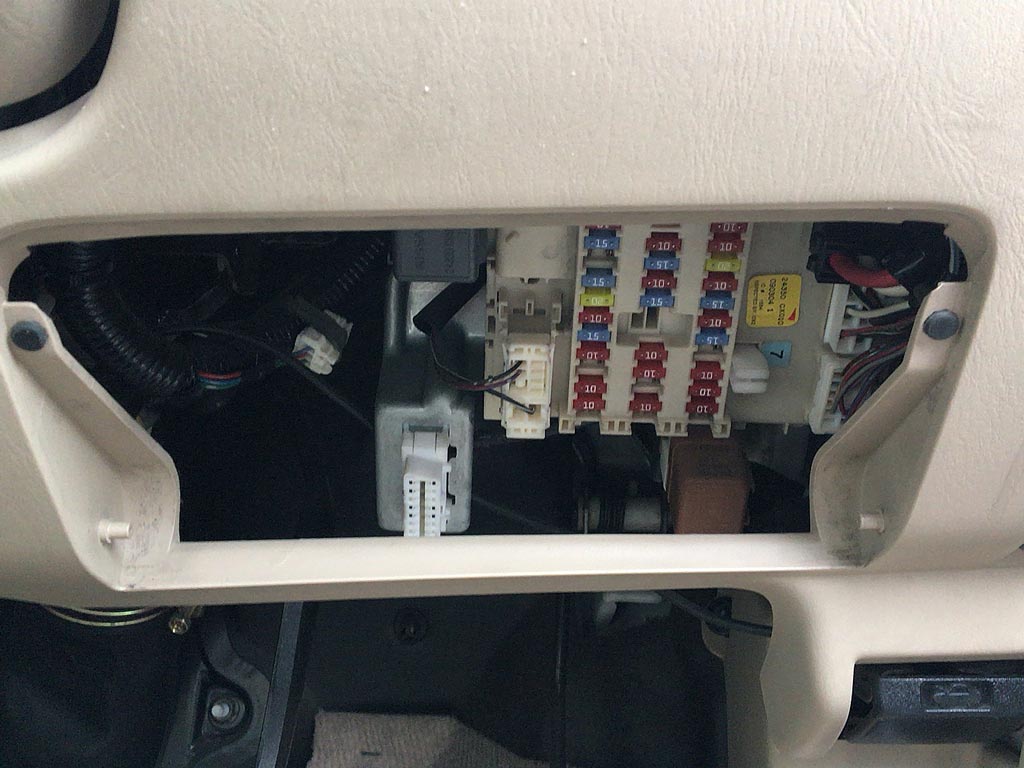 ルームランプが反応しなくなった以外は何も不具合はない様子なので、ヒューズが飛んだんだろってことで、エンジンルームのヒューズボックスを見て、どれだかイマイチ判らなかったので全部引っこ抜いて確認してみるものの、ひとつも飛んでいない。