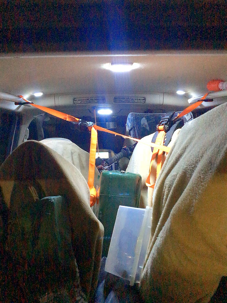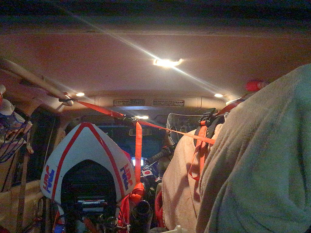 ところがじゅりーさんのトランポ車内はとてもピカピカしていて、積んであるVFRがやたらと男前に見えてですね、『じゅりーさんなんぞ!?これなんぞ!?』と聞くと、室内灯をLEDに換えているのだという。