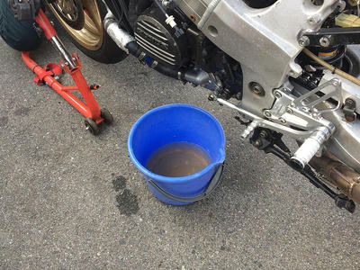 僕がキャリパーに夢中になってハンドルを切ってはいけない方向に切ってザバーっと零れたりっていう絶妙のコンビネーションで作業は続く。