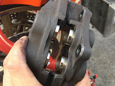 それからメタルラバーをシュッシュってしながらピストンツールで馴染ませたり揉み出したりを両方のキャリパーのピストンが4つずつ均等に出て来るまで繰り返す。