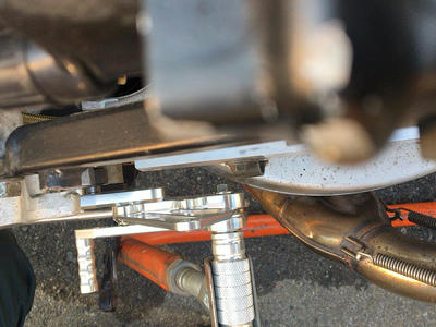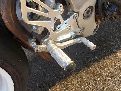 こいつにネジロック剤を塗ってやろうってトコなんですけども、そもそも増し締めしようにも一度ステップを全部外さないとボルトにアクセスできないっていうのが問題だってことで、上からスパナでアクセス出来るようにボルトを変えてもらった。