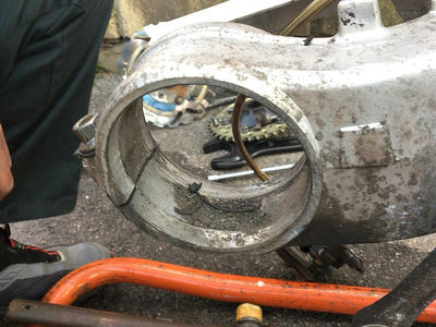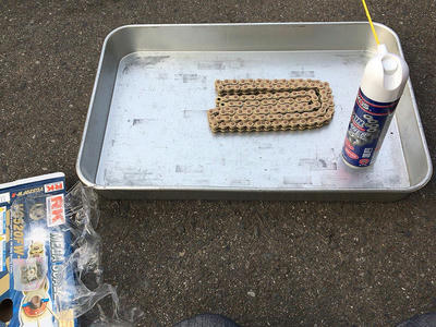 そうこうしている間に僕は新品チェーンのグリスを落とす係。