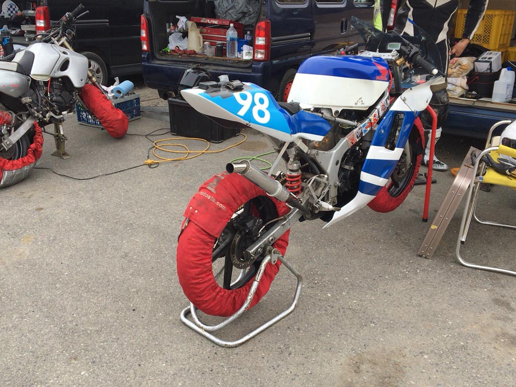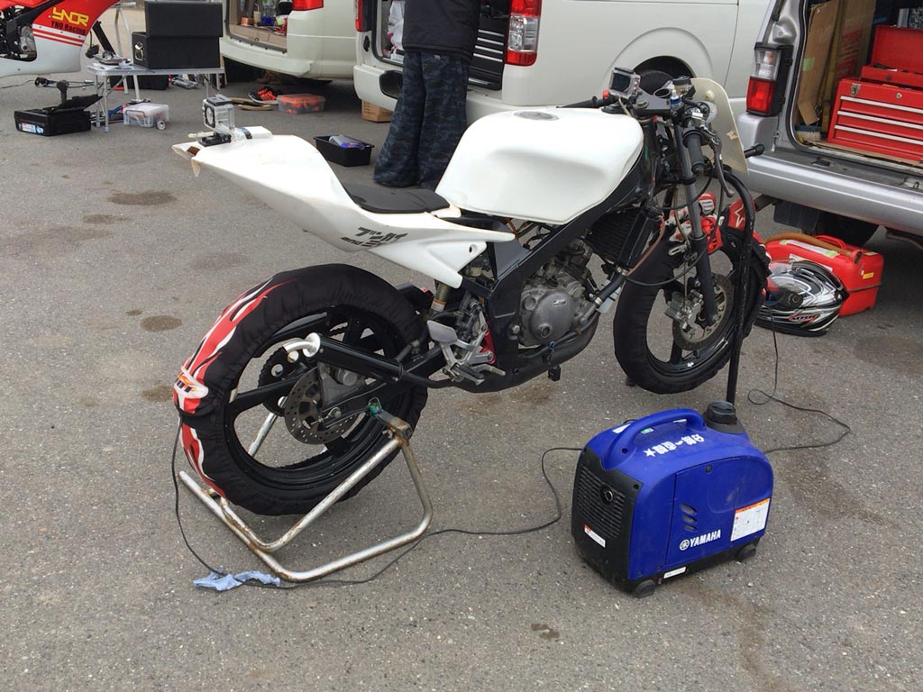 分解さんのお陰で、お手伝いに来てくれたYNORacingのボスと並べてアスファルトの駐車場を使わせてもらうことができました。