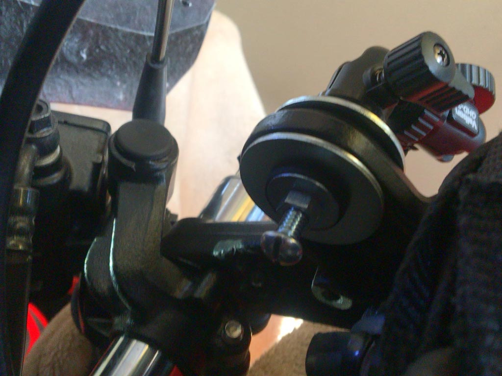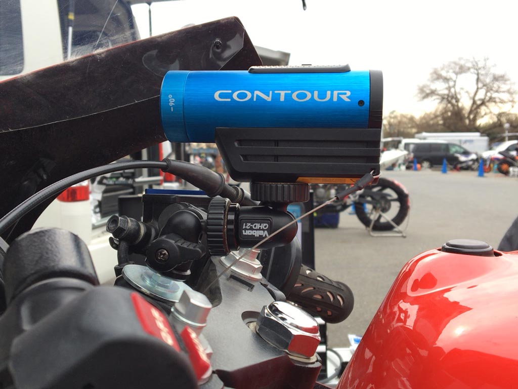 吸盤のをタンクに貼ってた時は思い切り伏せるとたまに当ってしまってたのだけど、この位置なら当らないしメーター周りとラインなんかの欲しい情報は全部入るので良い感じ。