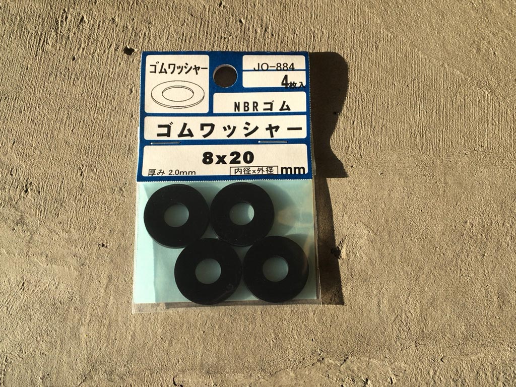 これを上下2枚ずつ、ボルトに車体から振動が伝わる部分に咬ませておいた。