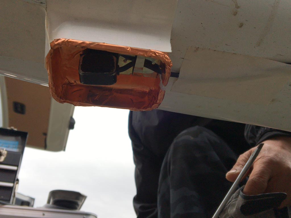 タッパーみたいなのごとアンダーカウルの下にガムテープで固定するとこんな感じ。