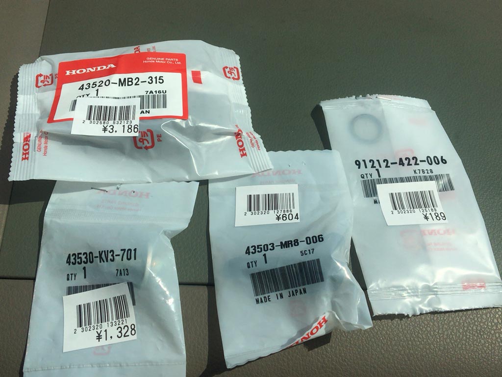 取り寄せてもらっていおいたVFRのリアブレーキのパーツ諸々。