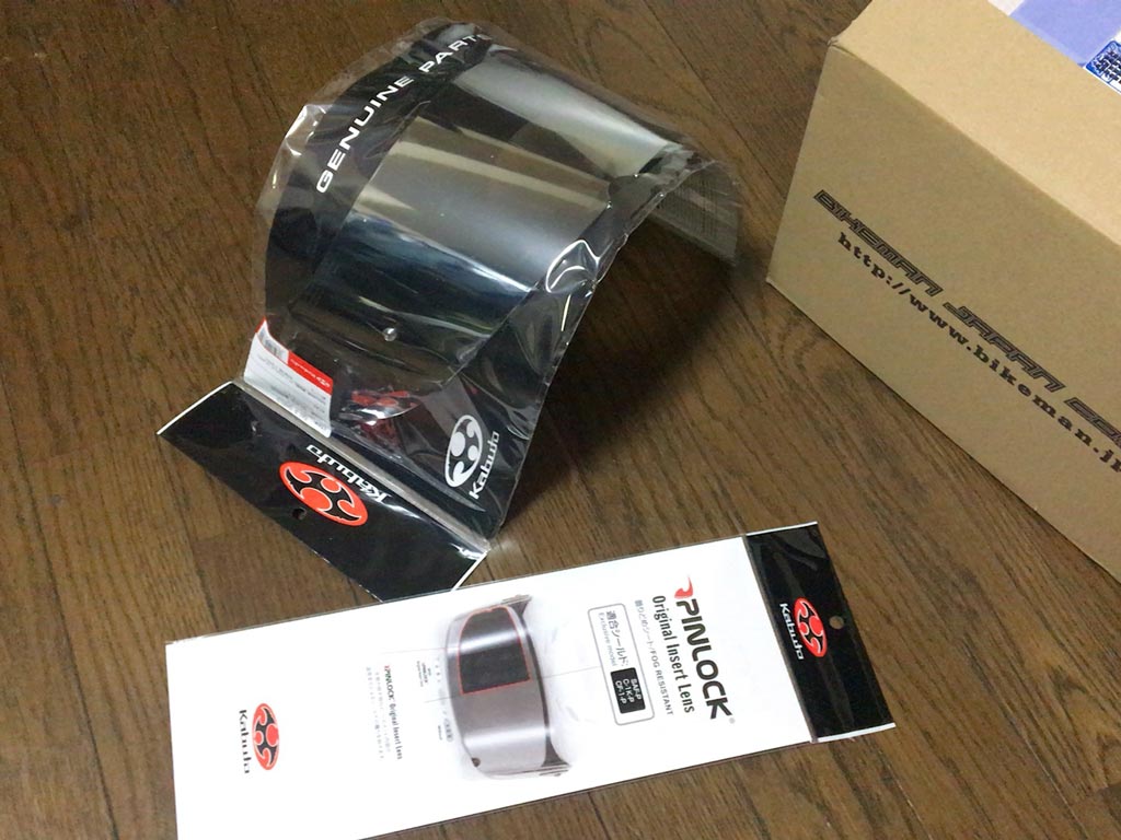 そんなこんなで一昨日、ちょっと貯まってた楽天のポイントを併用して良い感じのお値段で購入したOGK FF5Vのシールドとピンロックのシートなんですけども、注文受付メールでは5営業日を目標にお届けっていうことでのんびり構えていたら、さっき帰宅して日課のオニオンスープを作ってる時にいつもの佐川のおっちゃんが持って来てくれた。
