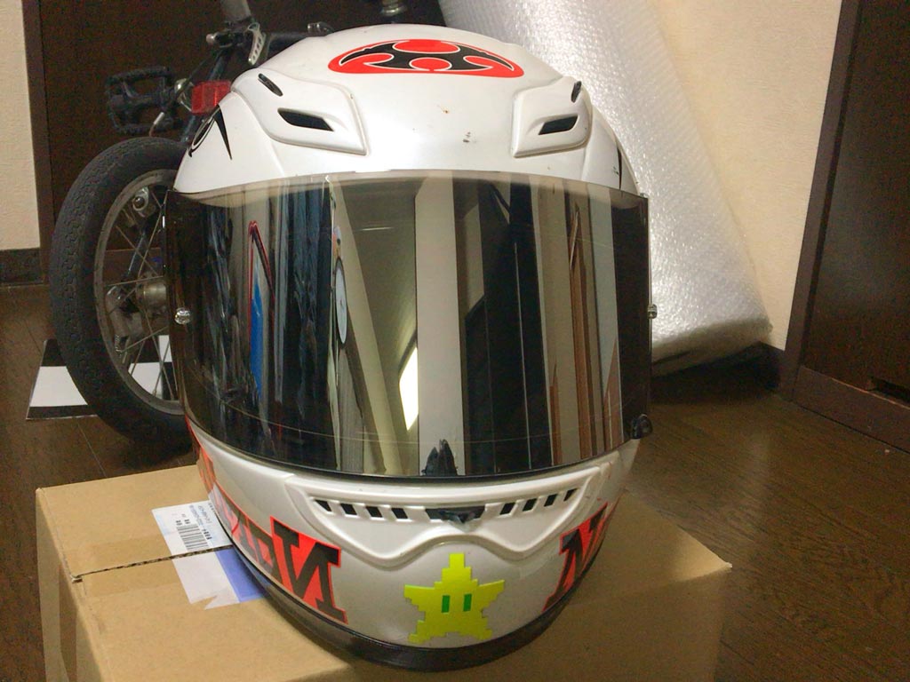 で、僕はこれまでミラーとかスモークのシールドにずっと憧れていたのだけど、目のせいなのかただの感覚のせいなのか、暗かったり色が着いていたりすると距離を見誤ってタイムが落ちやがるので、待ち乗りはともかくサーキットではクリアのシールドしか着けないことにしてる。