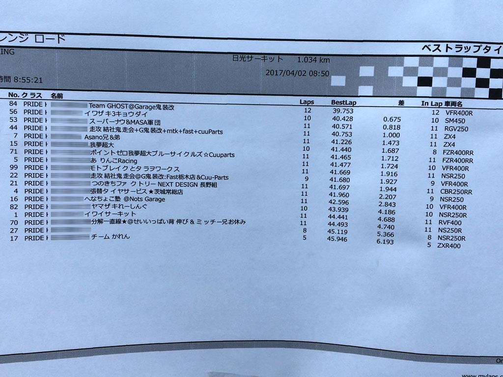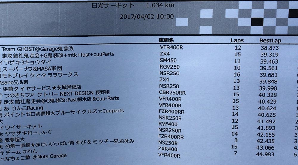 それから、何度でも言いますが、NS250で日光43秒は本当に速いですよ。