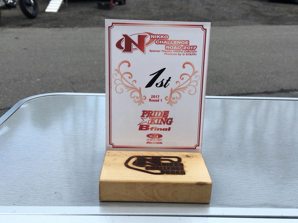 ところがですね、今日の僕のVFRはNメカさんのお陰で高速コーナー絶好調だったので、裏直でパス出来て何度か抜き差しした後はなんとか守り切って念願の、っつぅか悲願の初優勝。