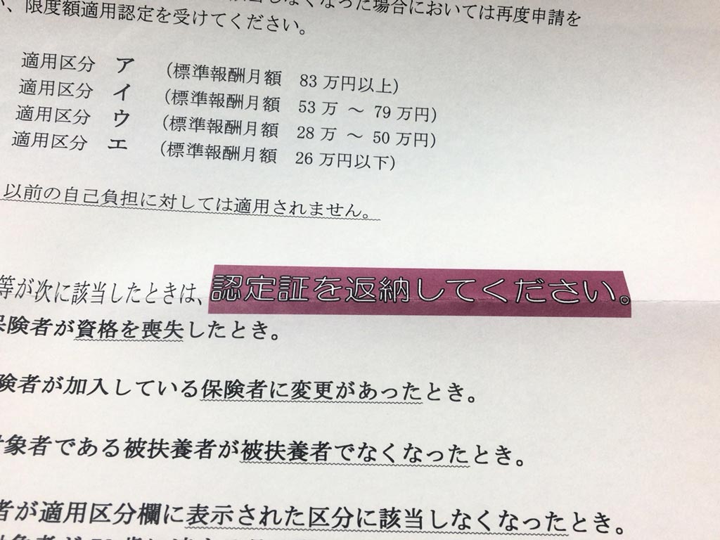 来週の火曜水曜で右足に埋まっているチタンのプレートを取り外す手術のために入院する予定なんですけども、入院するに当たって限度額適用認定証を申請しておいてください、と。