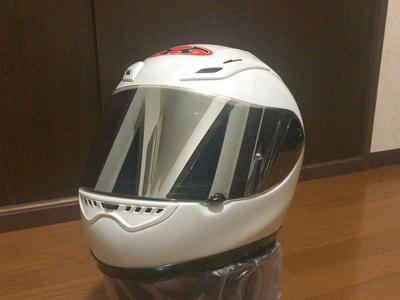 で、シールの端の部分の汚れや、どうしても残ってしまった糊なんかはパーツクリーナーで落として、久しぶりのホワイト単色ヘルメット。