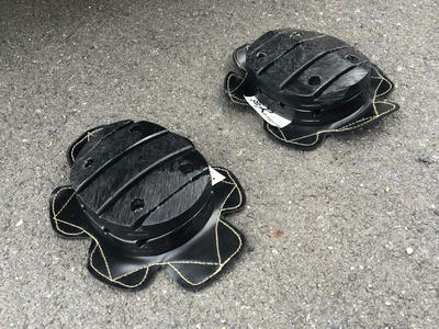 今ツナギに着いている方の右側がボルトの頭が出るくらい減ったら、雨用のもう片方と交換して雨用の表面が新品になるという算段で。