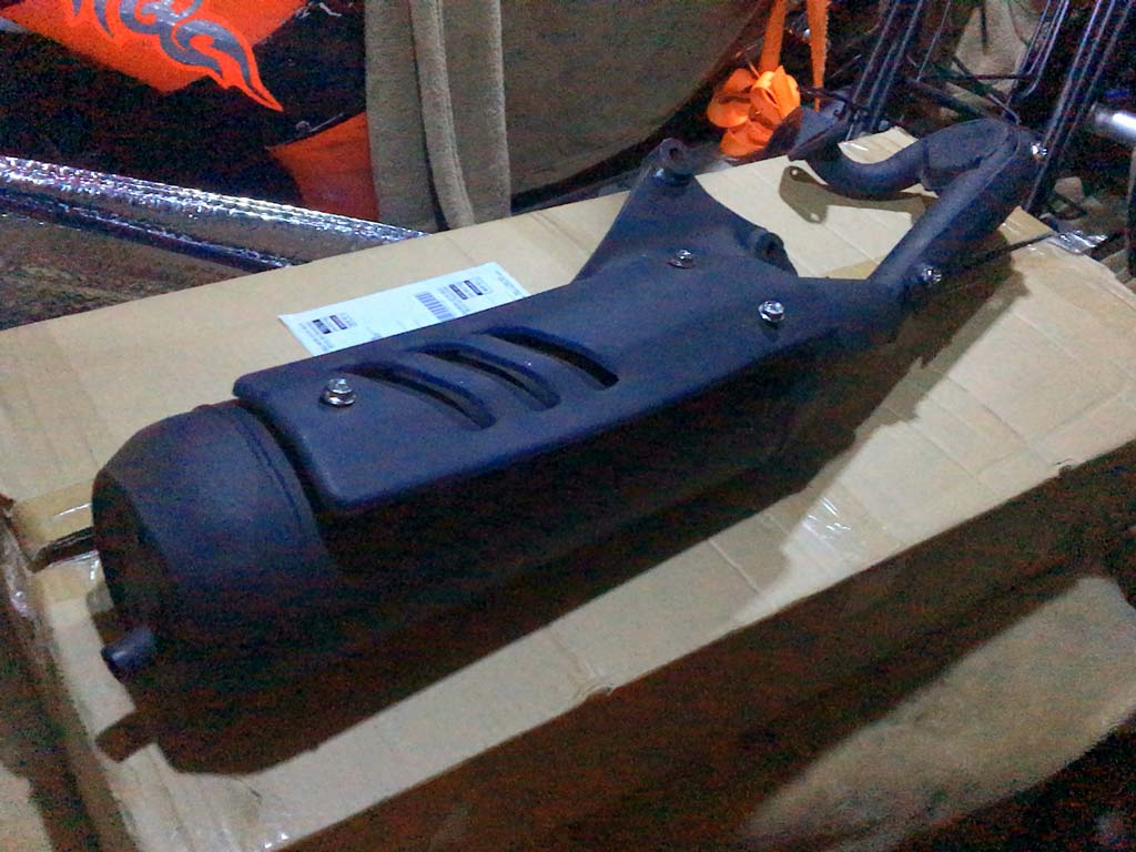一昨日ヤフオクで落札したMollet V100の純正”風”マフラーが早速届いた模様。